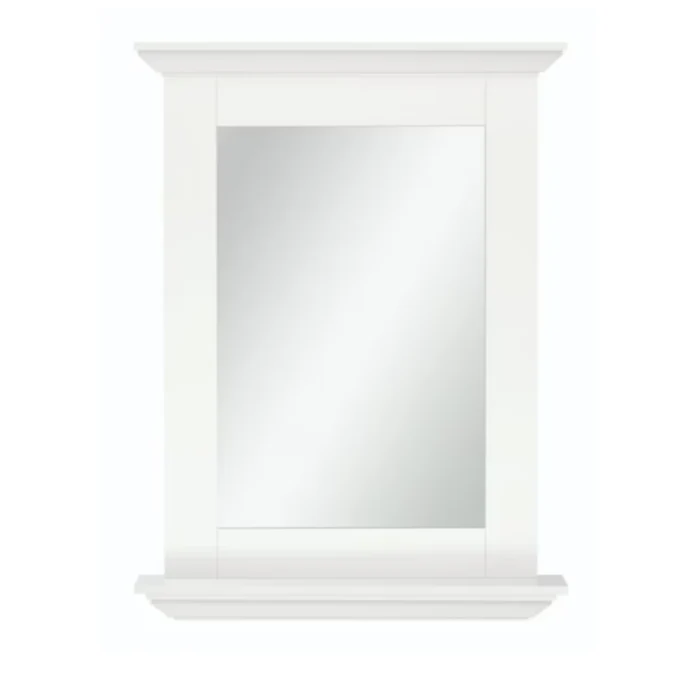 - White bathroom mirror from the Palencia collection offers a fresh, minimal design to complement a variety of bathroom decor