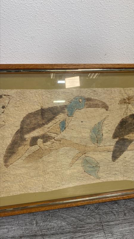Add a touch of nature-inspired charm to your home with this framed vintage botanical leaf print. The delicate leaf patterns are presented in soft, earthy tones, creating a serene and inviting atmosphere. Set against a parchment-like background, the artwork has a timeless appeal that is perfect for any room seeking a botanical touch. The print is encased in a classic wooden frame, which adds to its vintage character.
