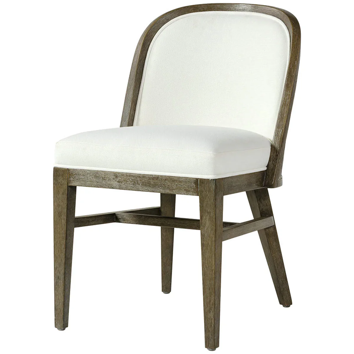 Hand-distressed hardwood frame and legs feature core rattan details intricately placed on the outside back. Chair comes with a fixed upholstered seat and is available in all PALECEK finishes.